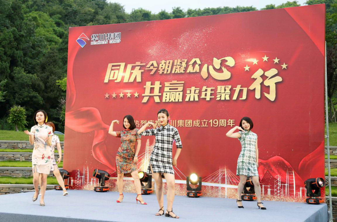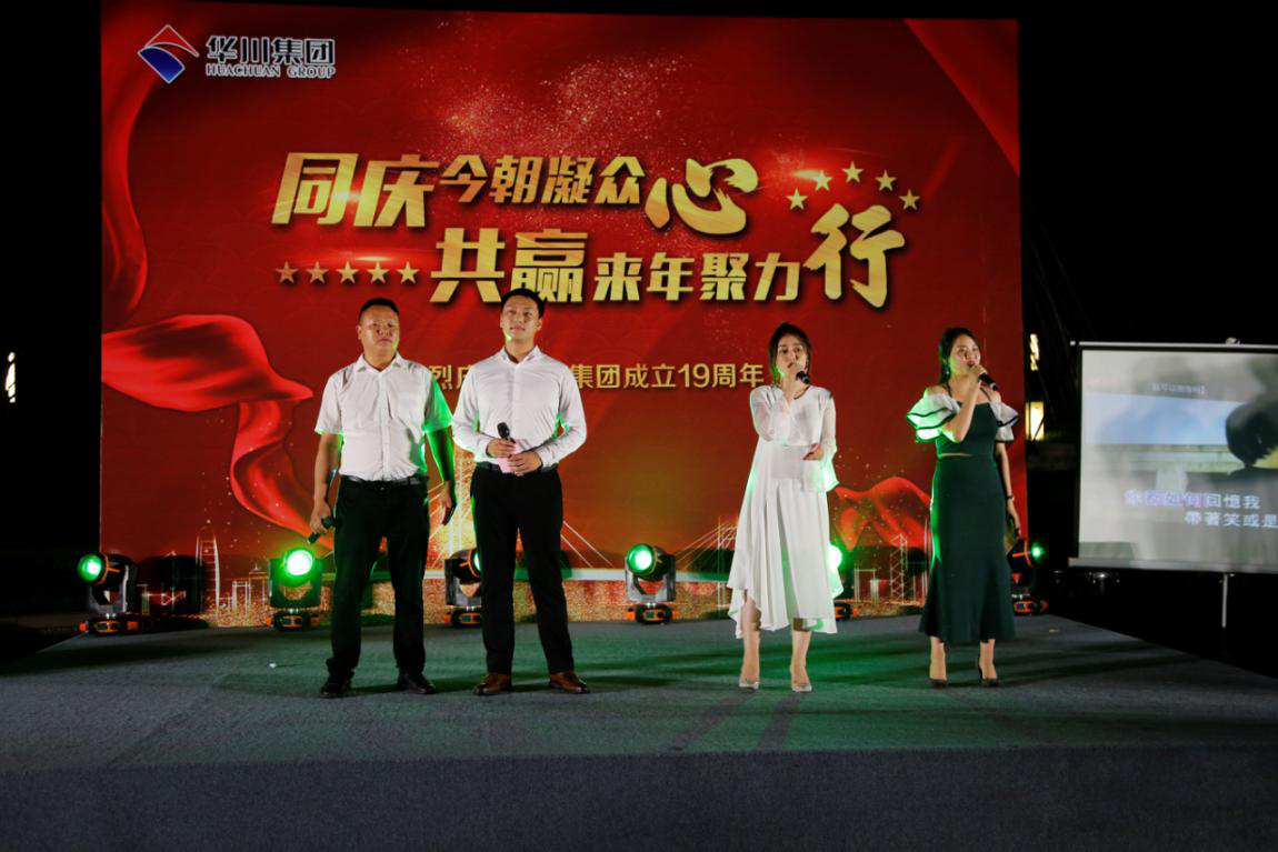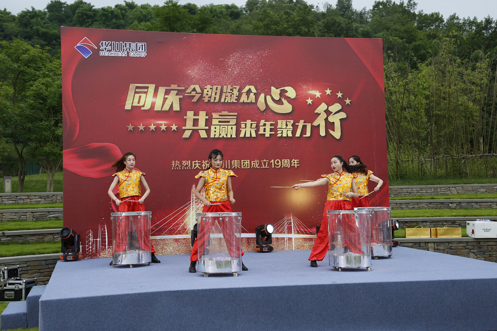 晚上,農(nóng)業(yè)總部基地?zé)艋痨陟冢瘓F(tuán)19周年慶典晚會(huì)在這里舉行。作為十九周年與二十周年的連接節(jié)點(diǎn),今晚過后將迎來集團(tuán)成立二十周年華誕,黨委副書記發(fā)布《關(guān)于慶祝集團(tuán)成立二十周年氛圍營(yíng)造工作的通知》,副總裁熊文發(fā)布《休養(yǎng)度假專項(xiàng)福利方案》。發(fā)布會(huì)后,一曲《盛世華誕》鼓舞劃破夜空,激烈昂揚(yáng)鼓聲將拉開了慶典的序幕。《今天是你的生日》,通過詞語改編,為集團(tuán)送上了美好的生日祝福;群舞《別樣風(fēng)華》,通過集團(tuán)女干部與文工團(tuán)溫婉柔美,猶如一幅曼妙的畫卷;朗誦加合唱的節(jié)目《華川力量》,字字鏗鏘,展示出華川人血脈里流淌的豪邁情懷和磅礴的力量。伴隨著晚風(fēng)習(xí)習(xí),周年慶典進(jìn)入尾聲,在《華川之歌》的歌聲中,大家自發(fā)走上舞臺(tái),齊聲合唱,伴隨著熟悉的曲調(diào),大家連連歡呼,為本次慶典劃上了圓滿的句號(hào)。