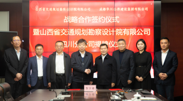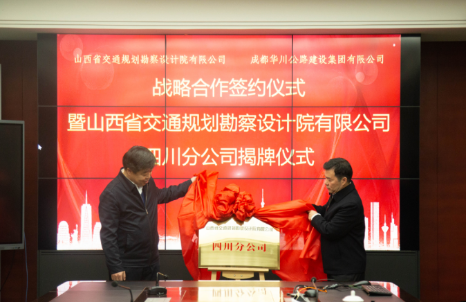 簽約儀式后,舉行山西省交通規(guī)劃勘察設計院有限公司四川分公司揭牌儀式,集團董事長、總經(jīng)理、黨委書記謝應文受邀揭牌。