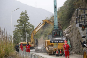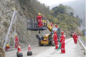 集團(tuán)參演科目為S105線南壩路段受到地震引發(fā)的次生災(zāi)害影響,導(dǎo)致山體滑坡、塌方,需要緊急搶通。演練中,根據(jù)指揮部命令,集團(tuán)迅速組織應(yīng)急救援隊(duì)伍到達(dá)受災(zāi)路段,快速清理塌方、落石,并與武警救援力量密切合作,共同完成了靠山體一側(cè)的高空作業(yè),成功搭建起20米長(zhǎng)的防護(hù)網(wǎng),在最短時(shí)間內(nèi)打通了青川至平武方向生命通道,為后續(xù)災(zāi)區(qū)救援爭(zhēng)取了寶貴時(shí)間,圓滿完成了演練任務(wù)。