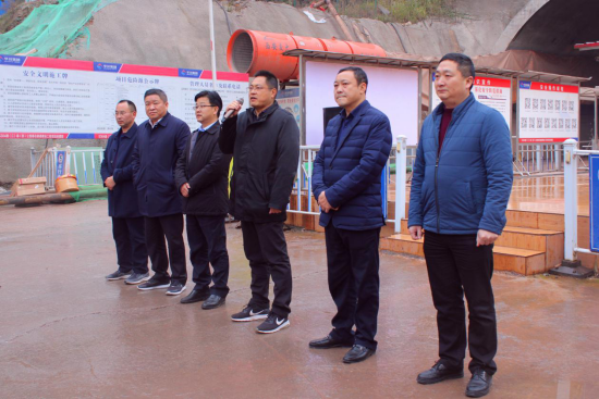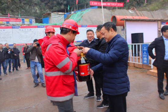 12月5日上午9時(shí),華途公司通江項(xiàng)目春在隧道右洞貫通儀式在隧道出口端舉行,通江縣委書記孫輝、副書記何奎,縣長(zhǎng)王軍、副縣長(zhǎng)羅旭輝,縣交通運(yùn)輸局、財(cái)政局等領(lǐng)導(dǎo)出席,業(yè)主公司董事長(zhǎng)蘇川,集團(tuán)副總裁楊開榮、華途公司總經(jīng)理趙君等參加了儀式。