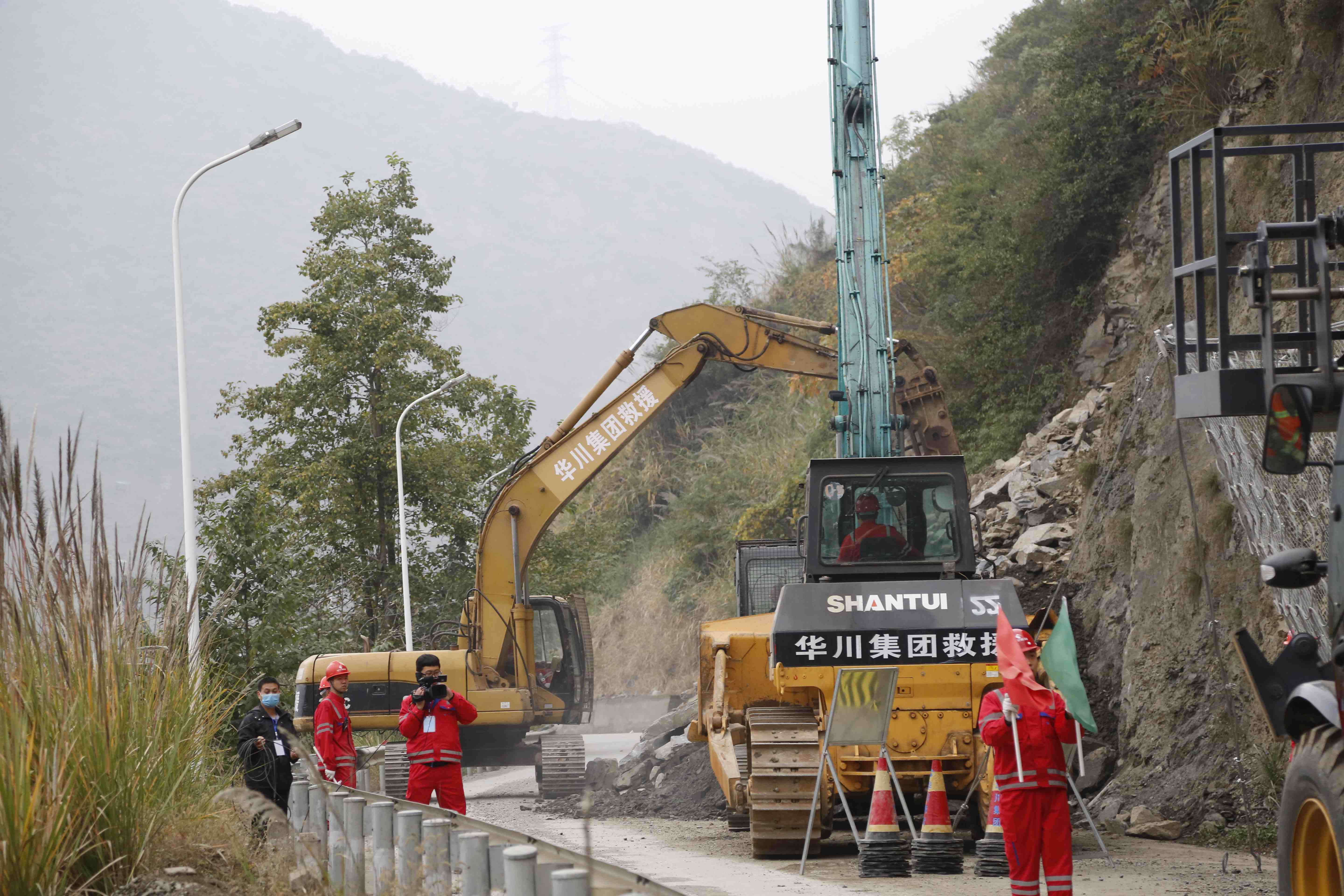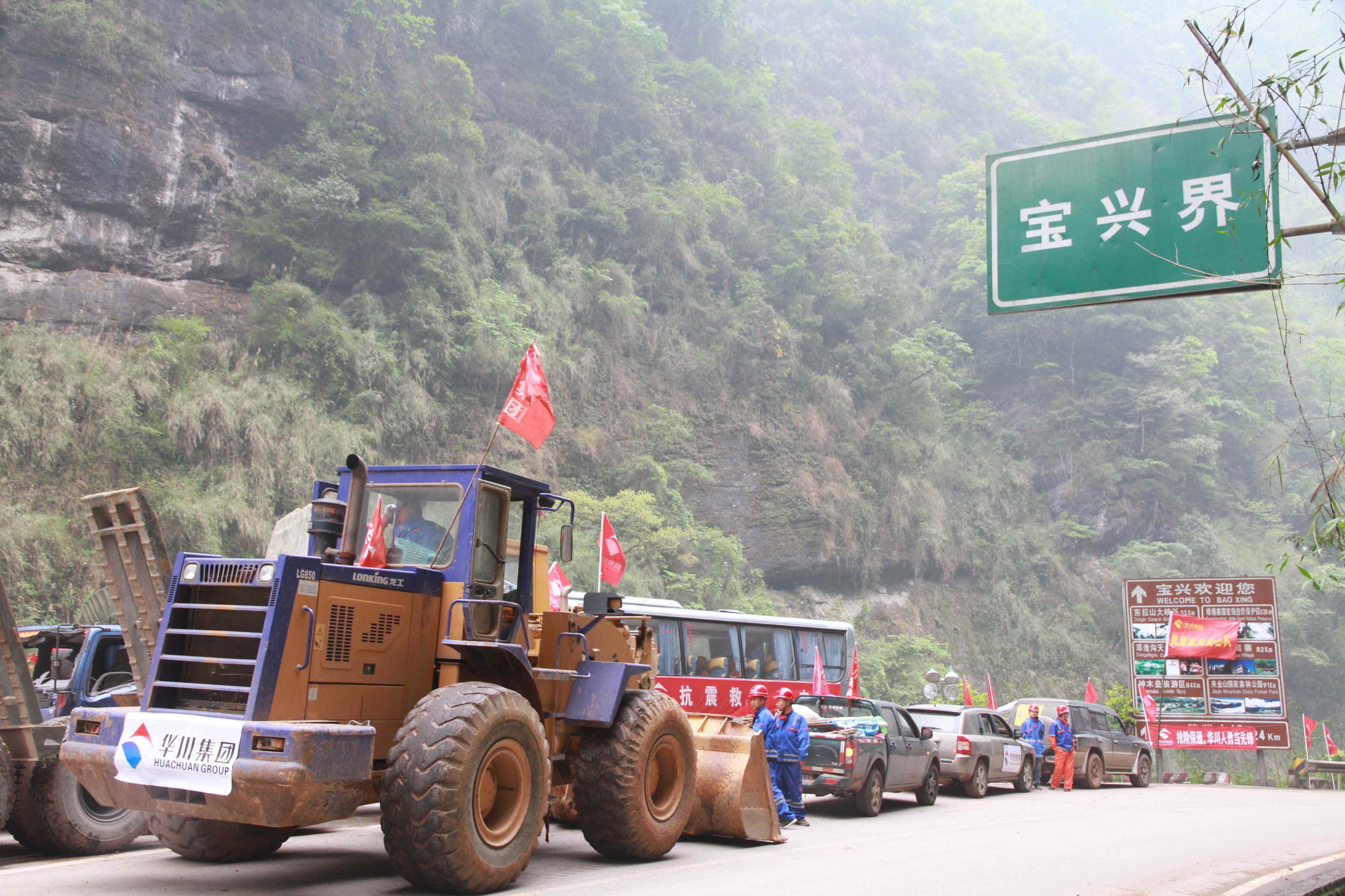 (華川集團(tuán)搶險(xiǎn)救災(zāi)隊(duì)伍人員在“4.20”救災(zāi)一線(xiàn))(集團(tuán)董事長(zhǎng)謝應(yīng)文在寶盛大橋搶險(xiǎn)加固現(xiàn)場(chǎng)接受采訪(fǎng)) (華川集團(tuán)在“4.20”抗震救災(zāi)一線(xiàn))