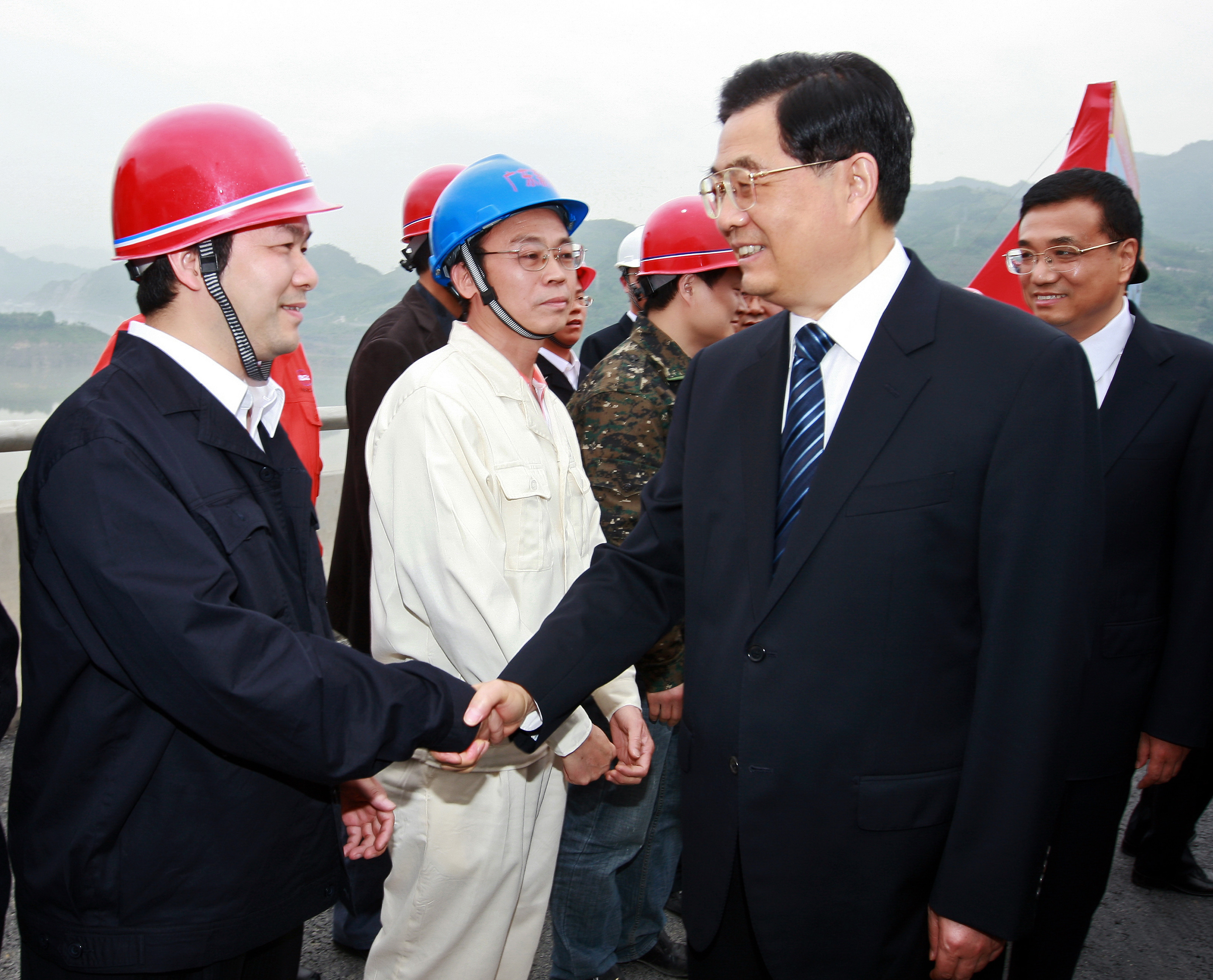 (2009年5月12日,胡錦濤總書(shū)記在參加“5.12”汶川大地震周年活動(dòng)、視察災(zāi)后重建項(xiàng)目時(shí),親切接見(jiàn)華川集團(tuán)董事長(zhǎng)、總裁謝應(yīng)文)
